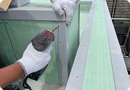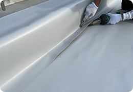 FRP(ガラス繊維強化プラスチック)で頑丈な防水層をつくる工法です。